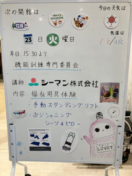 2025年1223日に北海道北広島市にあります、北ひろしま福祉会 機能訓練センター主催の機能訓練専門委員会に参加させていただき、参加者のみなさんに製品の説明および体験をしていただきました。